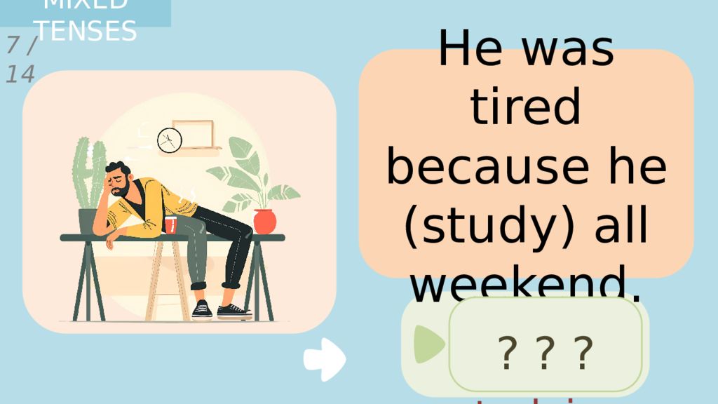 He was tired because he ( study) all weekend. had been studying 7 / 14 MIXED TENSES ? ? ?
