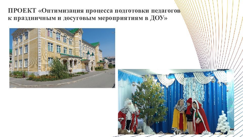 Слайд 2: ПРОЕКТ «Оптимизация процесса подготовки педагогов к праздничным и досуговым мероприятиям в ДОУ»