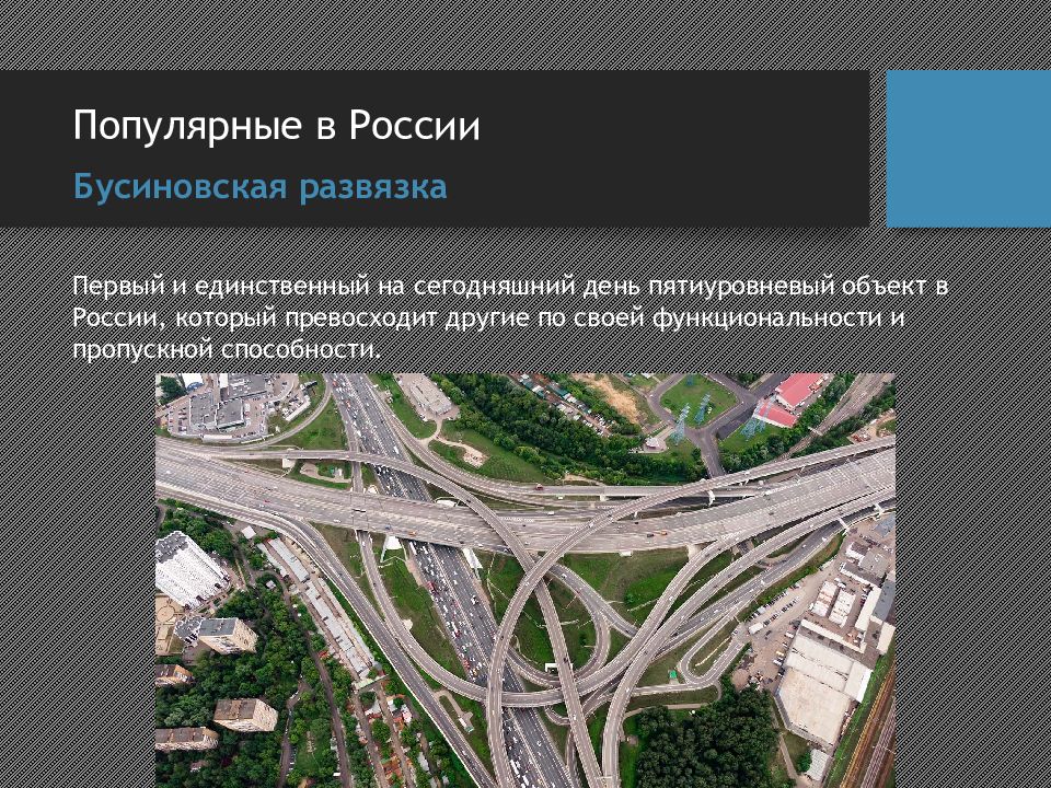 Первый слайд презентации: Многоуровневые транспортные развязки. Россия