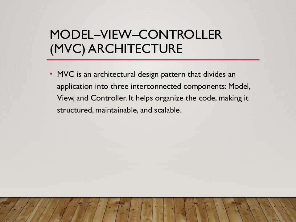 Первый слайд презентации: Model–View–Controller (MVC) Architecture