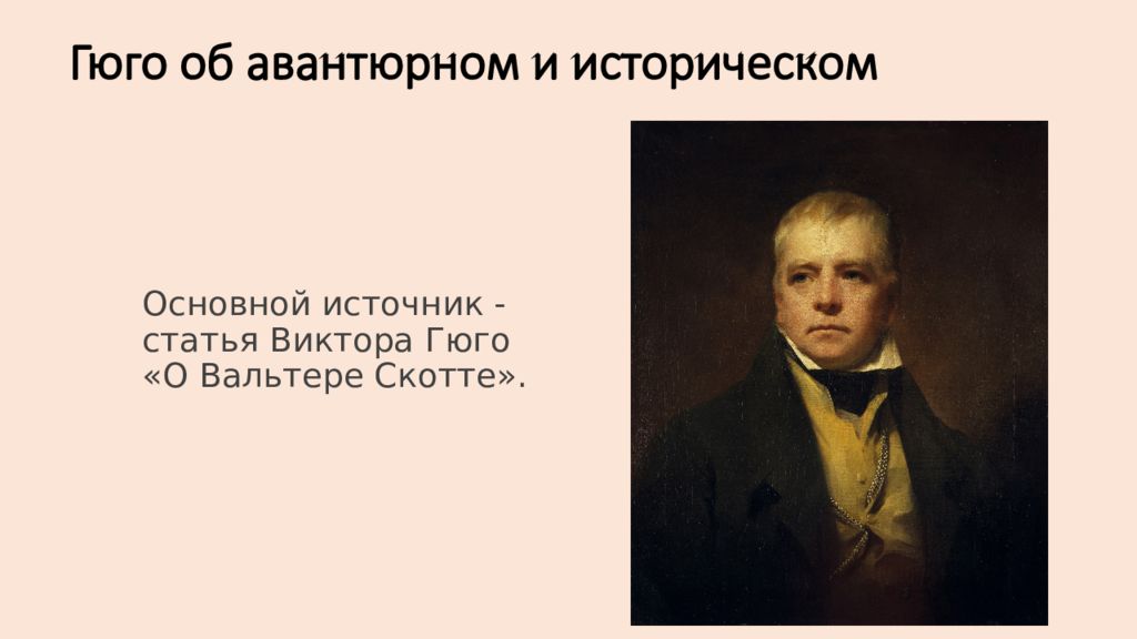 Основной источник - статья Виктора Гюго «О Вальтере Скотте».