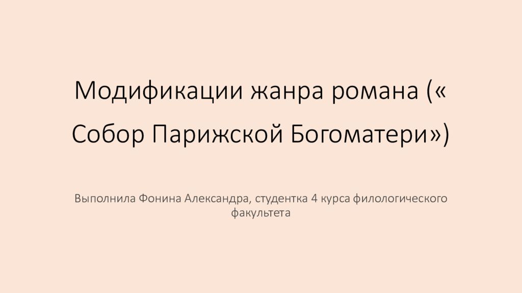 Первый слайд презентации: Модификации жанра романа («Собор Парижской Богоматери»)
