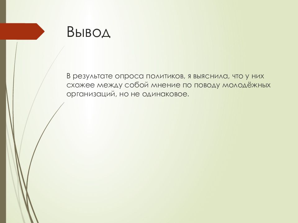 В результате опроса политиков, я выяснила, что у них схожее между собой мнение по поводу молодёжных организаций, но не одинаковое.