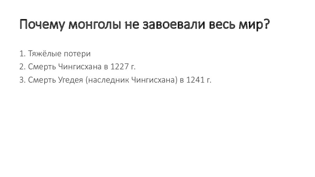 Слайд 35: Почему монголы не завоевали весь мир ?