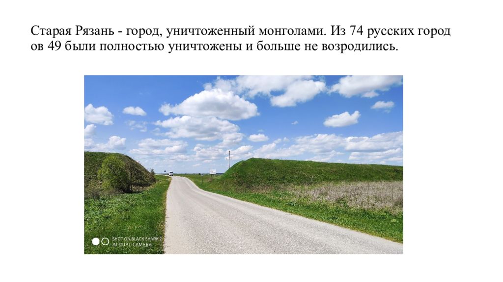 Слайд 50: Старая Рязань - город, уничтоженный монголами. Из 74 русских городов 49 были полностью уничтожены и больше не возродились