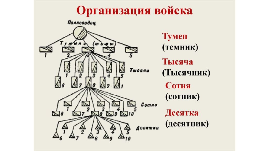 Слайд 16: Как было устроено монгольское войско ?
