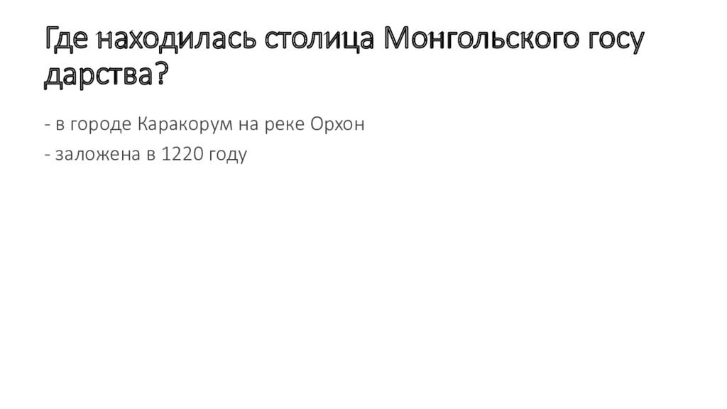 Слайд 13: Где находилась столица Монгольского государства ?