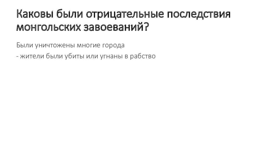 Слайд 48: Каковы были отрицательные последствия монгольских завоеваний ?