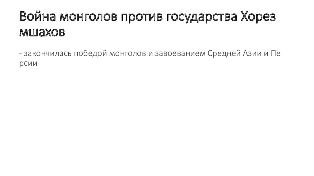 - закончилась победой монголов и завоеванием Средней Азии и Персии