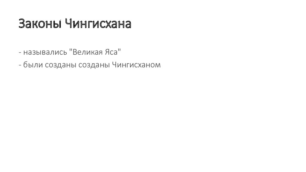 - назывались " Великая Яса " - были созданы созданы Чингисханом