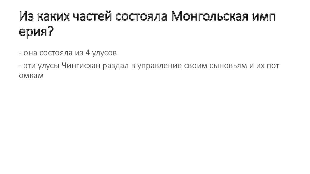 Слайд 38: Из каких частей состояла Монгольская империя ?
