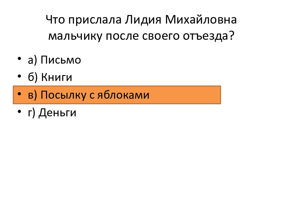 Слайд 28: Что прислала Лидия Михайловна мальчику после своего отъезда?