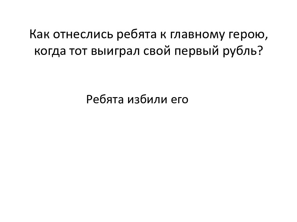 Слайд 36: Как отнеслись ребята к главному герою, когда тот выиграл свой первый рубль?