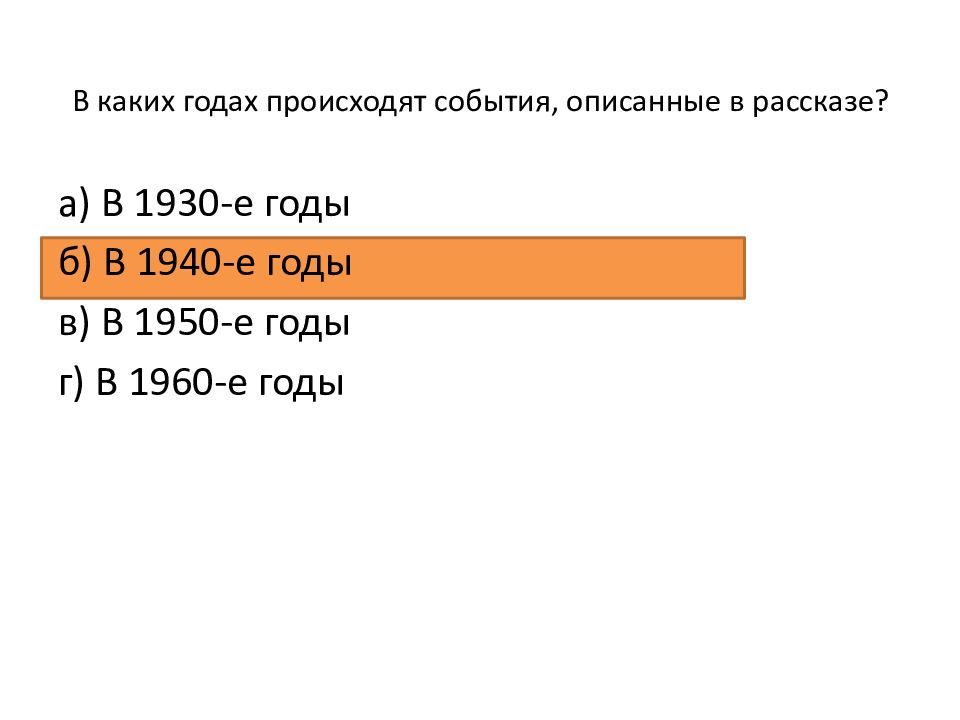 Слайд 6: В каких годах происходят события, описанные в рассказе?