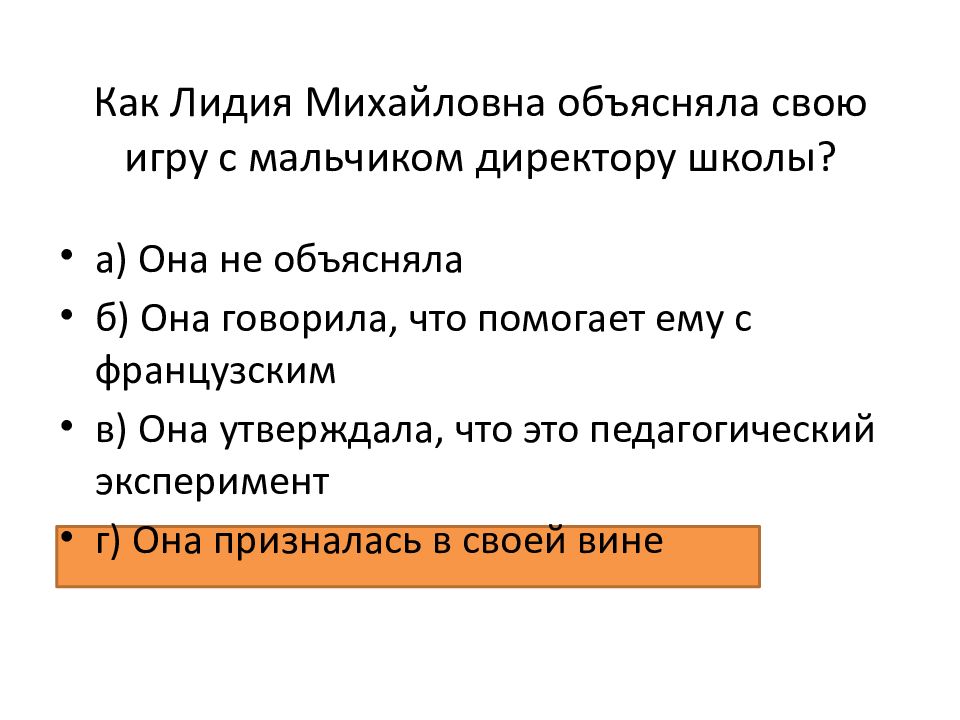 Слайд 23: Как Лидия Михайловна объясняла свою игру с мальчиком директору школы?