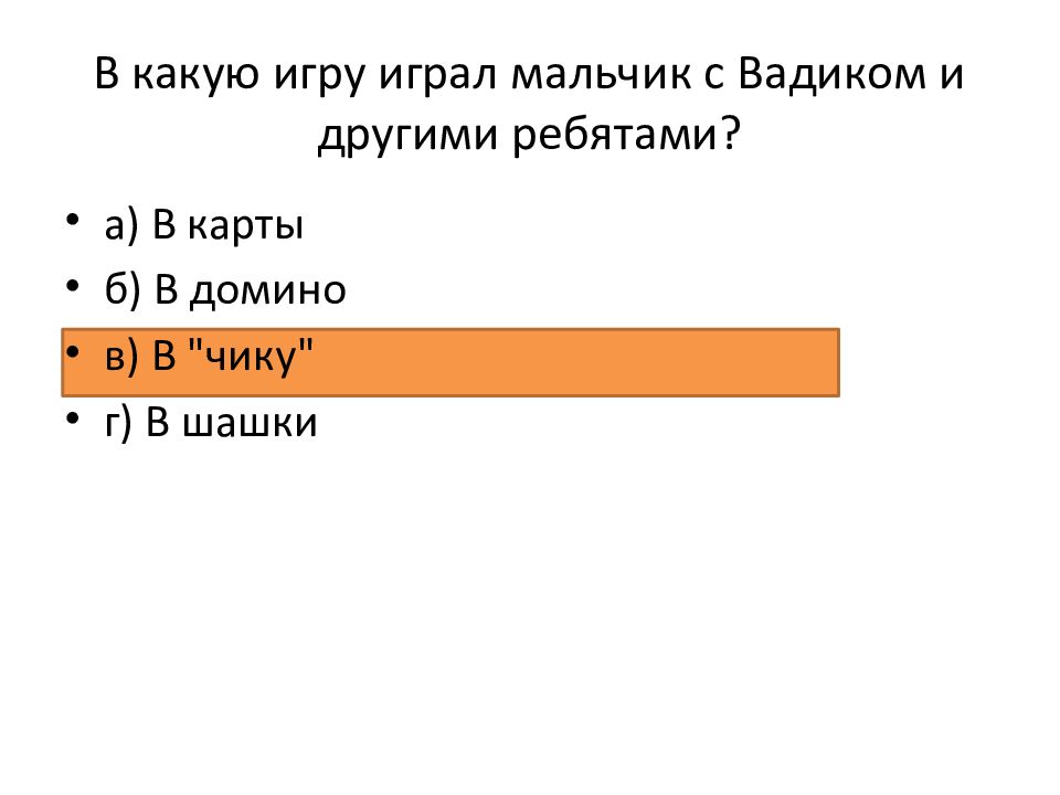Слайд 32: В какую игру играл мальчик с Вадиком и другими ребятами?