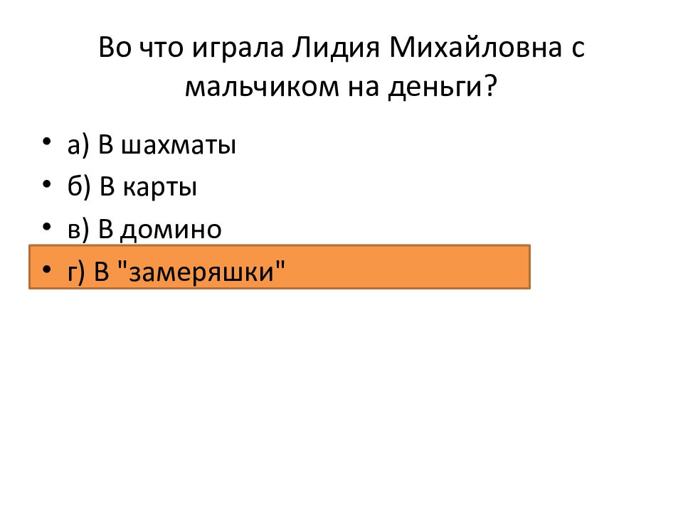 Слайд 9: Во что играла Лидия Михайловна с мальчиком на деньги?