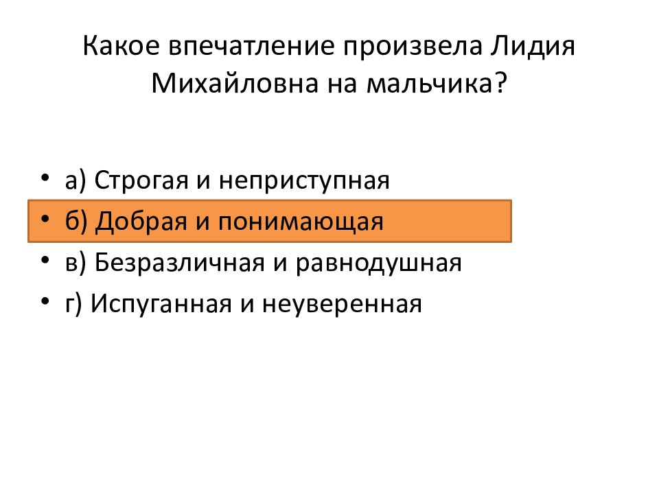 Слайд 19: Какое впечатление произвела Лидия Михайловна на мальчика?
