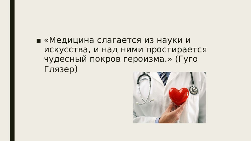«Медицина слагается из науки и искусства, и над ними простирается чудесный покров героизма.» ( Гуго Глязер )