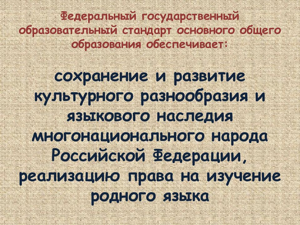 сохранение и развитие культурного разнообразия и языкового наследия многонационального народа Российской Федерации, реализацию права на изучение родного языка
