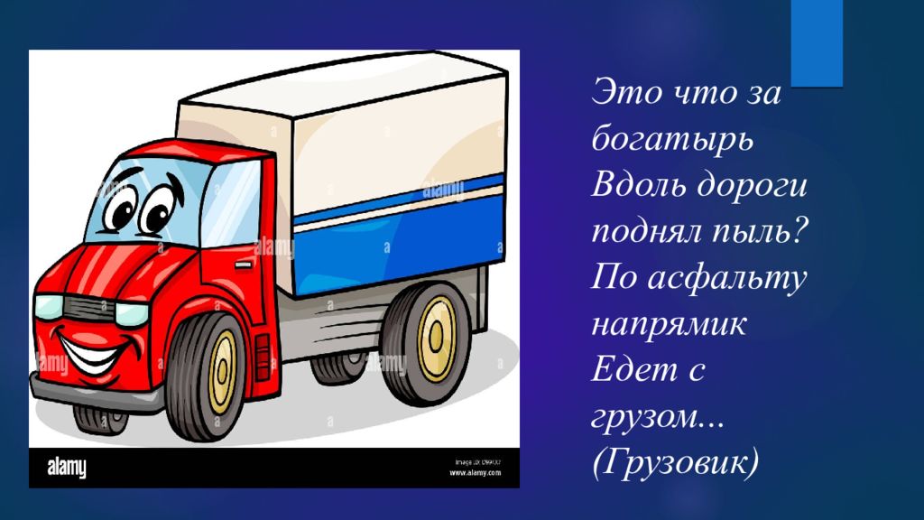 Это что за богатырь Вдоль дороги поднял пыль? По асфальту напрямик Едет с грузом... (Грузовик)
