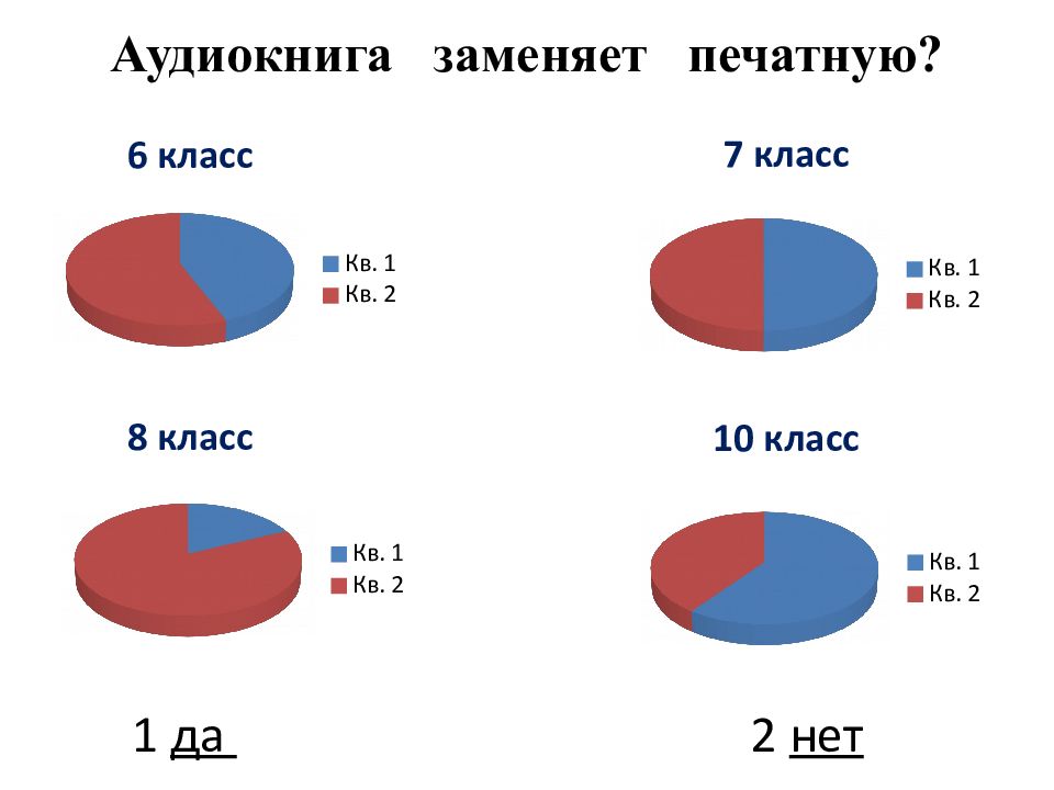 Аудиокнига заменяет печатную? 6 класс 7 класс 8 класс 10 класс 1 да 2 нет