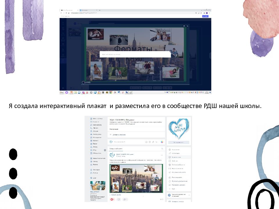 Я создала интерактивный плакат и разместила его в сообществе РДШ нашей школы.