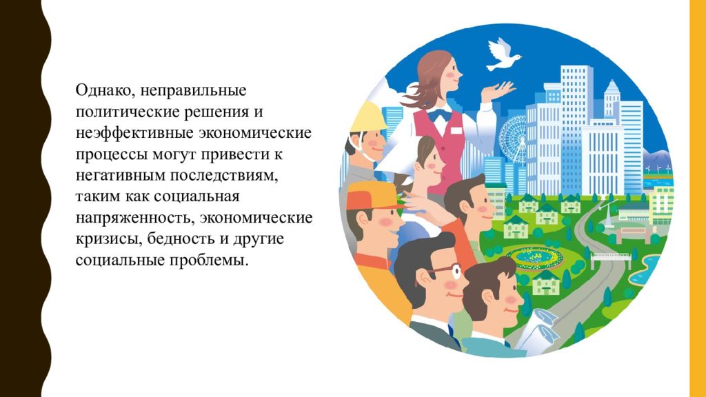 Однако, неправильные политические решения и неэффективные экономические процессы могут привести к негативным последствиям, таким как социальная напряженность, экономические кризисы, бедность и другие социальные проблемы.