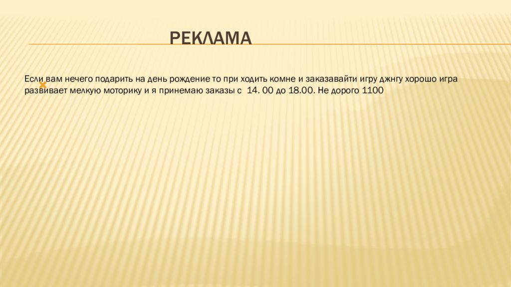 Если вам нечего подарить на день рождение то при ходить комне и заказавайти игру джнгу хорошо игра развивает мелкую моторику и я принемаю заказы с 14. 00 до 18.00. Не дорого 1100