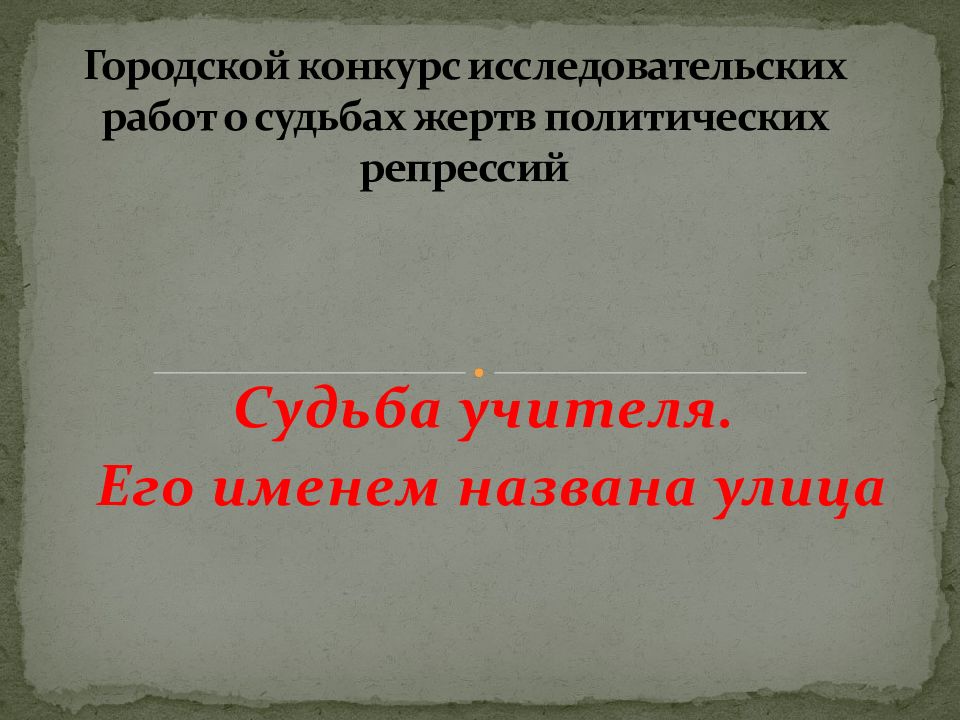 Судьба учителя. Его именем названа улица Городской конкурс исследовательских работ о судьбах жертв политических репрессий