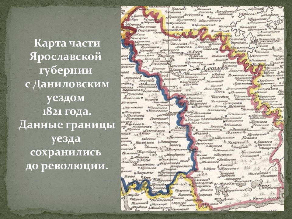 К арта части Ярославской губернии с Даниловским уездом 1821 года. Данные границы уезда сохранились до революции.