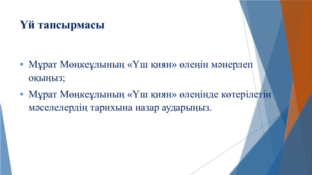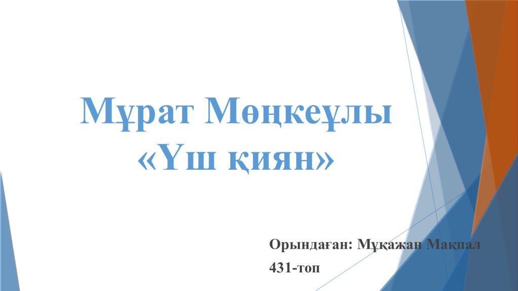 Первый слайд презентации: Мұрат Мөңкеұлы «Үш қиян»