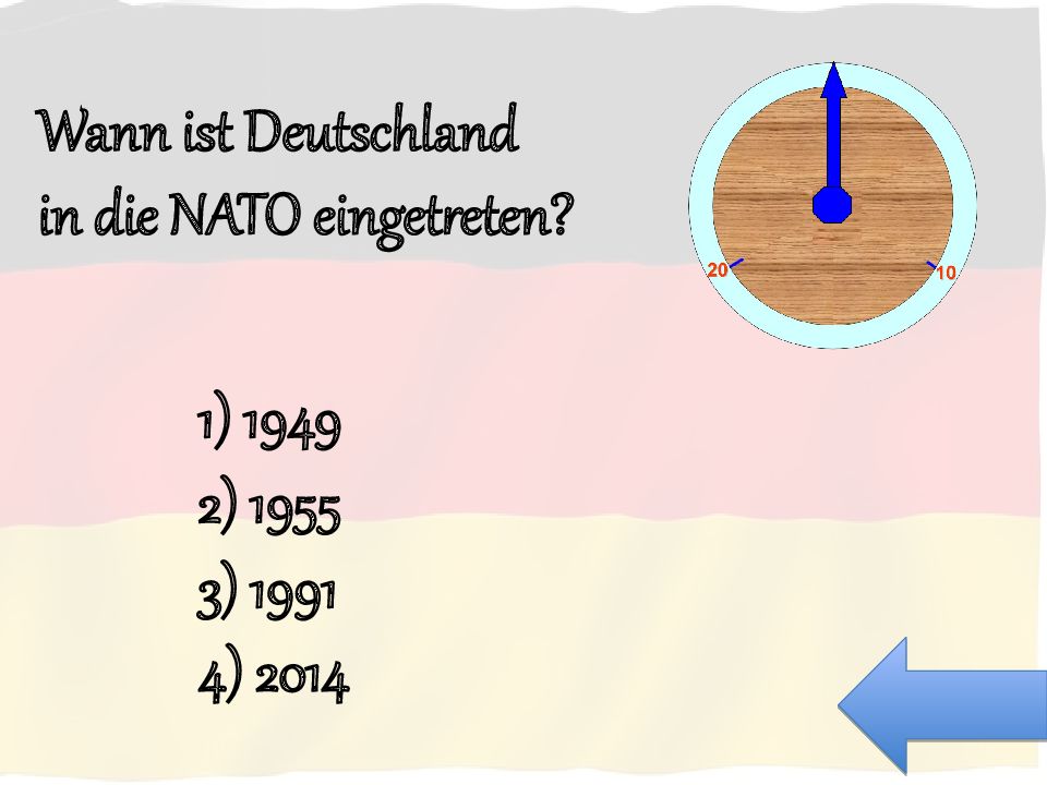 Wann ist Deutschland in die NATO eingetreten ? 1) 1949 2) 1955 3) 1991 4) 2014