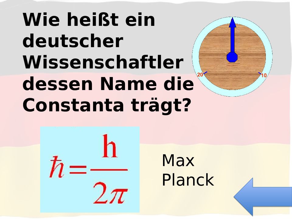 Wie heißt ein deutscher Wissenschaftler dessen Name die Constanta trägt? Max Planck