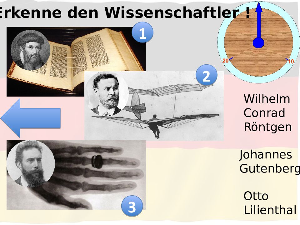 Erkenne den Wissenschaftler ! 1 2 3 Wilhelm Conrad Röntgen Johannes Gutenberg Otto Lilienthal