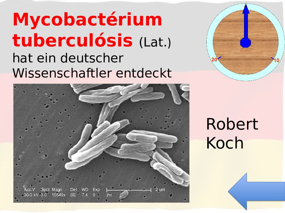 Mycobactérium tuberculósis (Lat. ) hat ein deutscher Wissenschaftler entdeckt Robert Koch