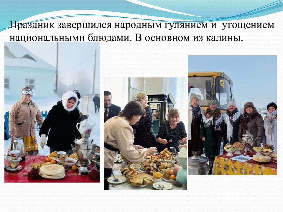 Праздник завершился народным гулянием и угощением национальными блюдами. В основном из калины.