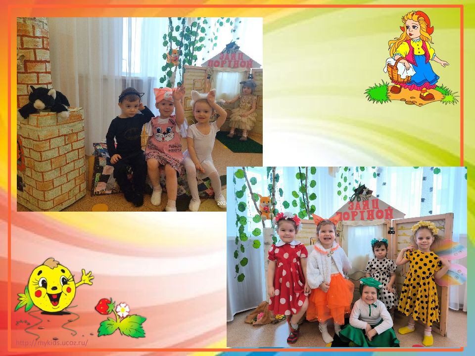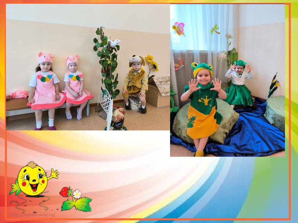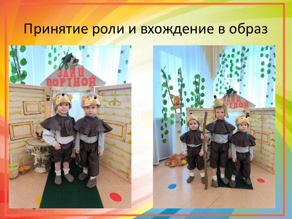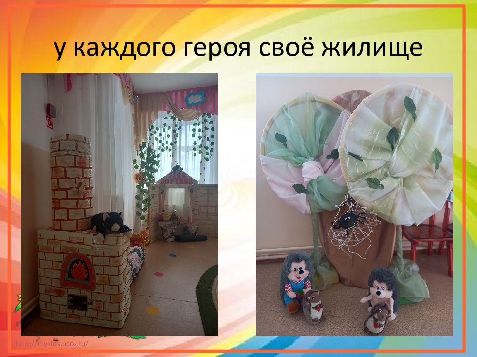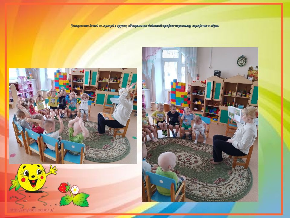 Слайд 4: Знакомство детей со сказкой в группе, обыгрывание действий каждого персонажа, вхождение в образ