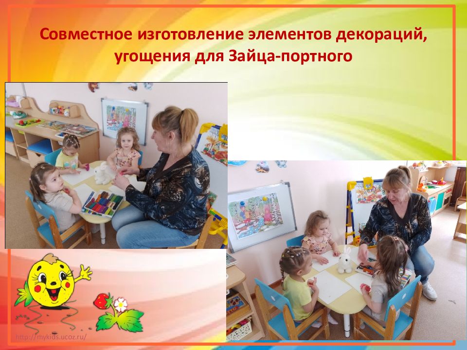 Слайд 5: Совместное изготовление элементов декораций, угощения для Зайца-портного