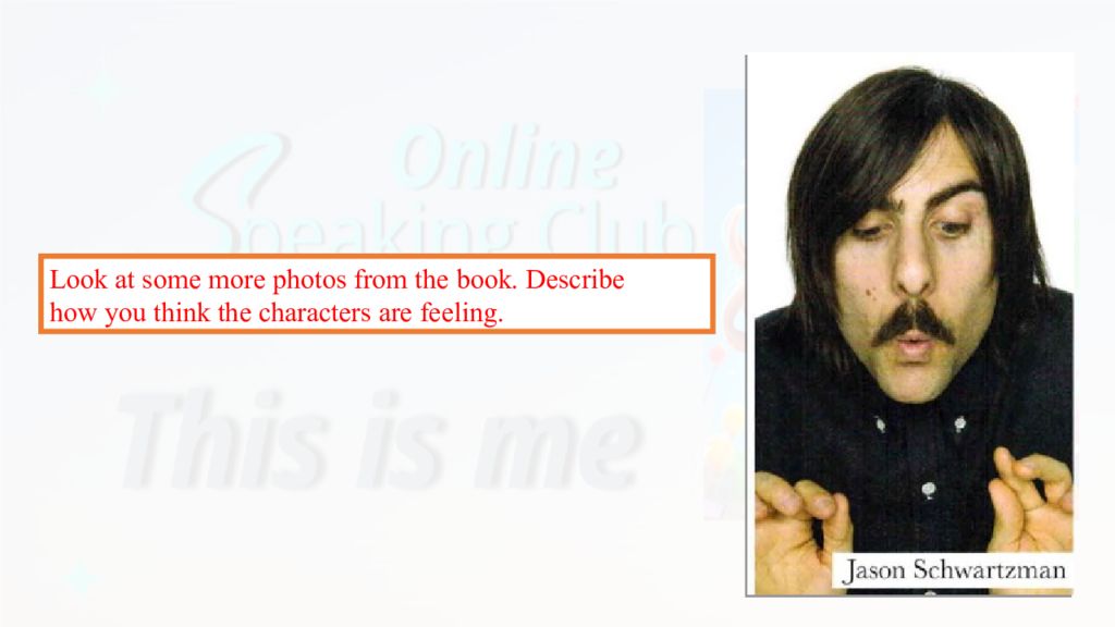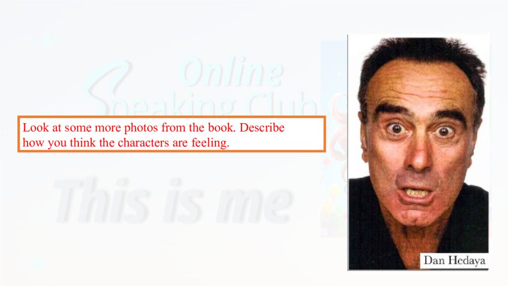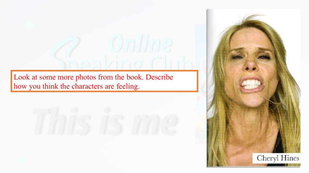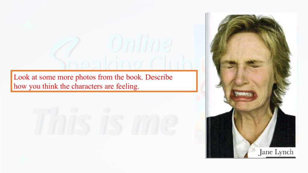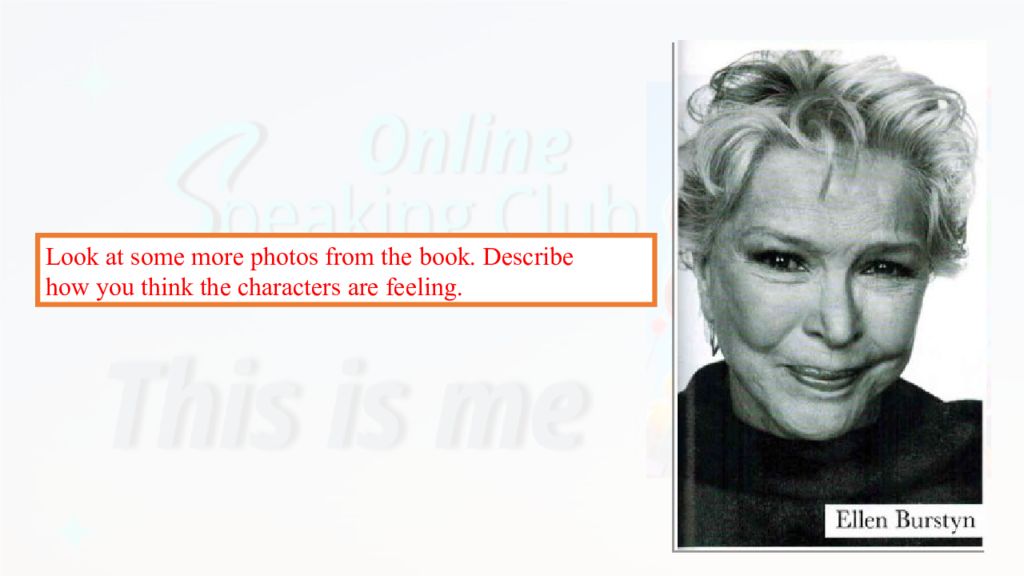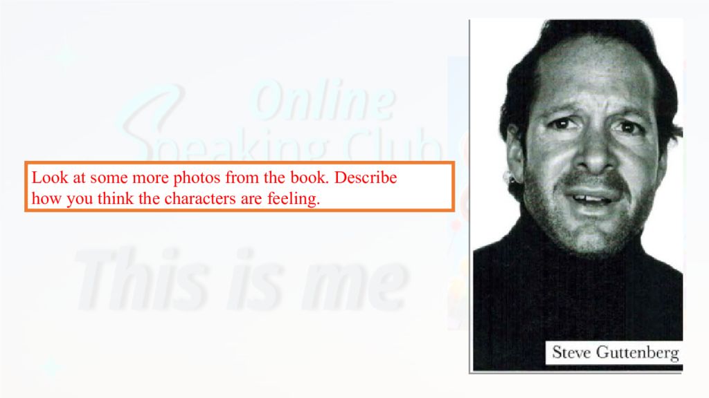 Look at some more photos from the book. Describe how you think the characters are feeling.