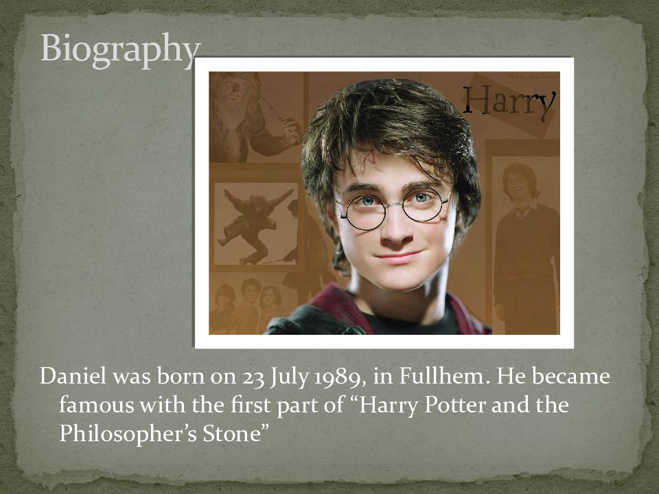 Daniel was born on 23 July 1989, in Fullhem. He became famous with the first part of “Harry Potter and the Philosopher’s Stone” Biography