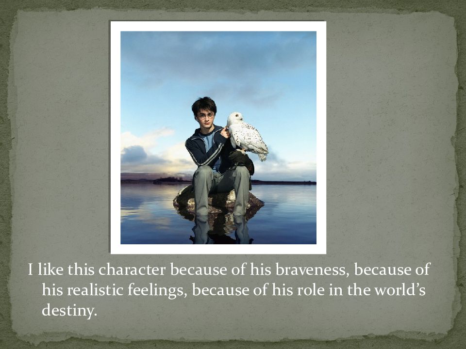 I like this character because of his braveness, because of his realistic feelings, because of his role in the world’s destiny.