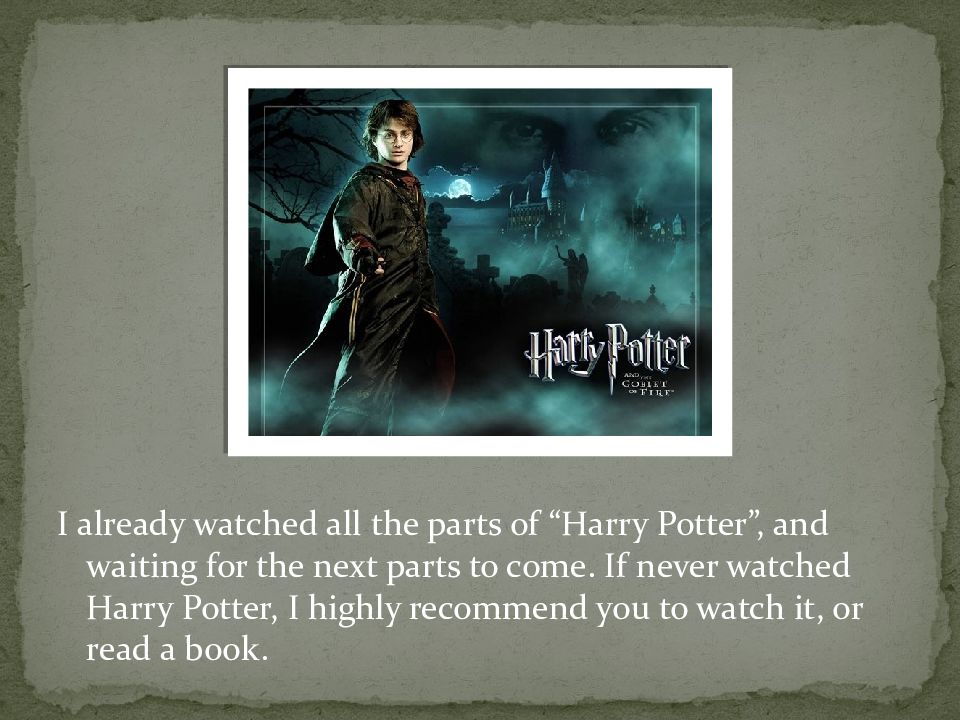 I already watched all the parts of “Harry Potter”, and waiting for the next parts to come. If never watched Harry Potter, I highly recommend you to watch it, or read a book.