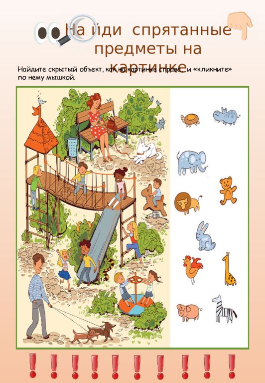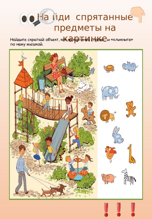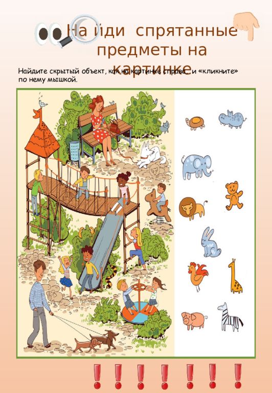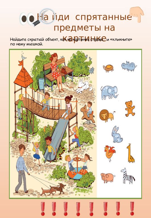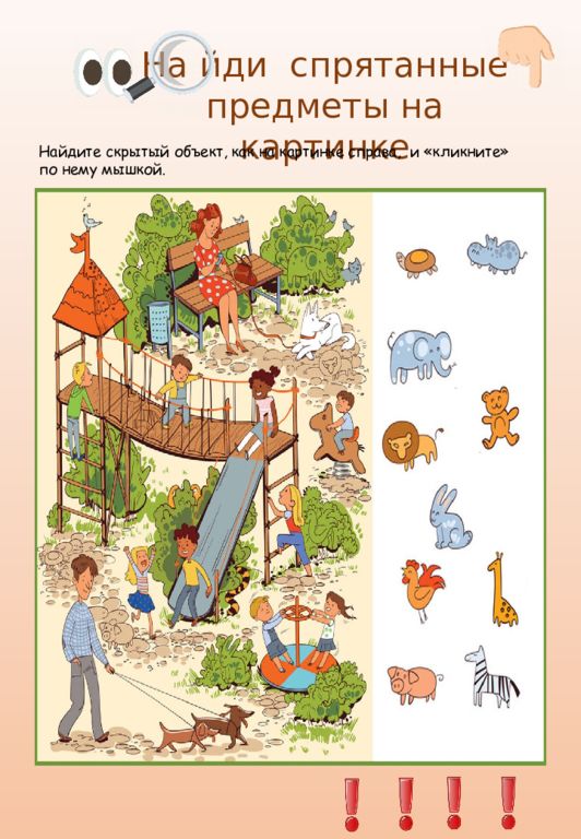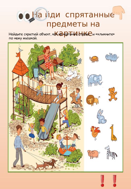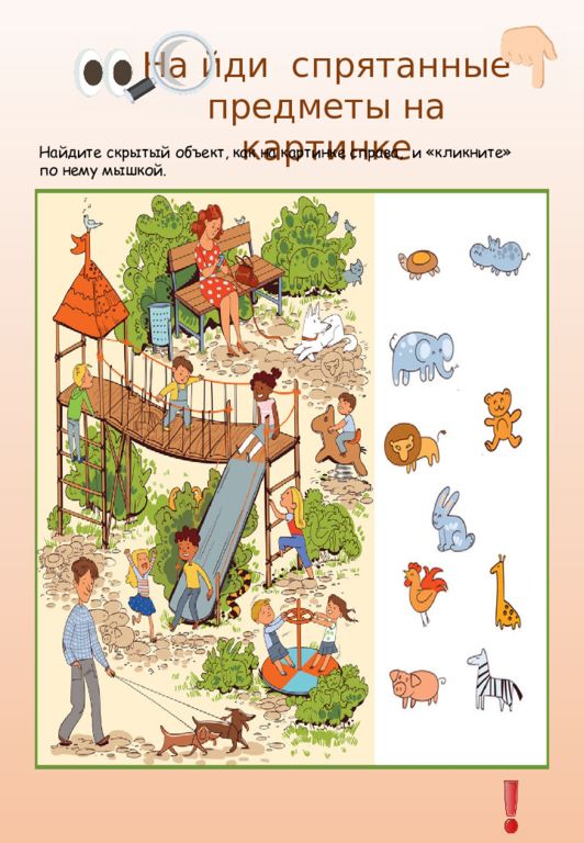 На йди спрятанные предметы на картинке Найдите скрытый объект, как на картинке справа, и «кликните» по нему мышкой.