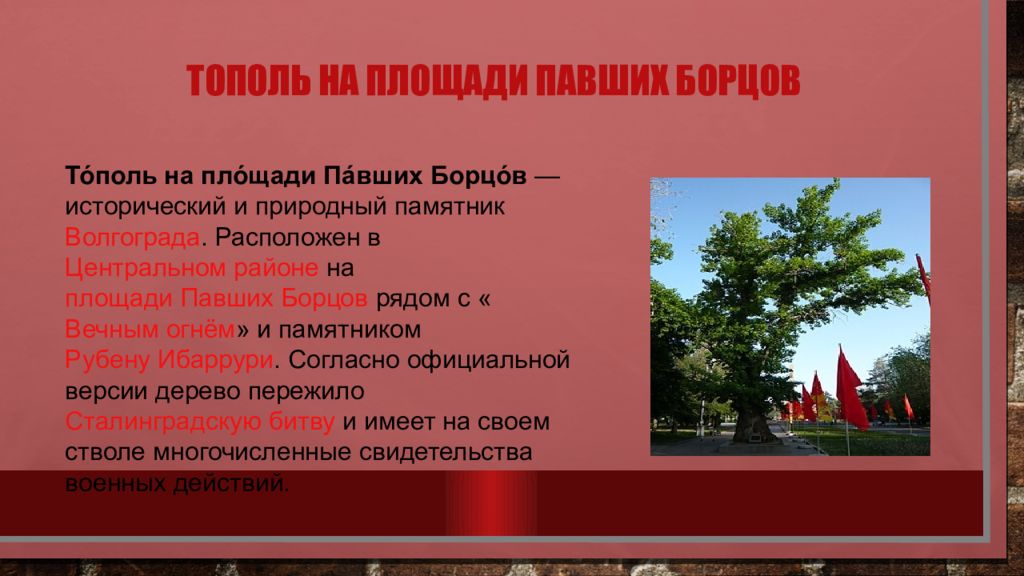 Последний слайд презентации: НА улицах сталинграда: Тополь на площади Павших Борцов