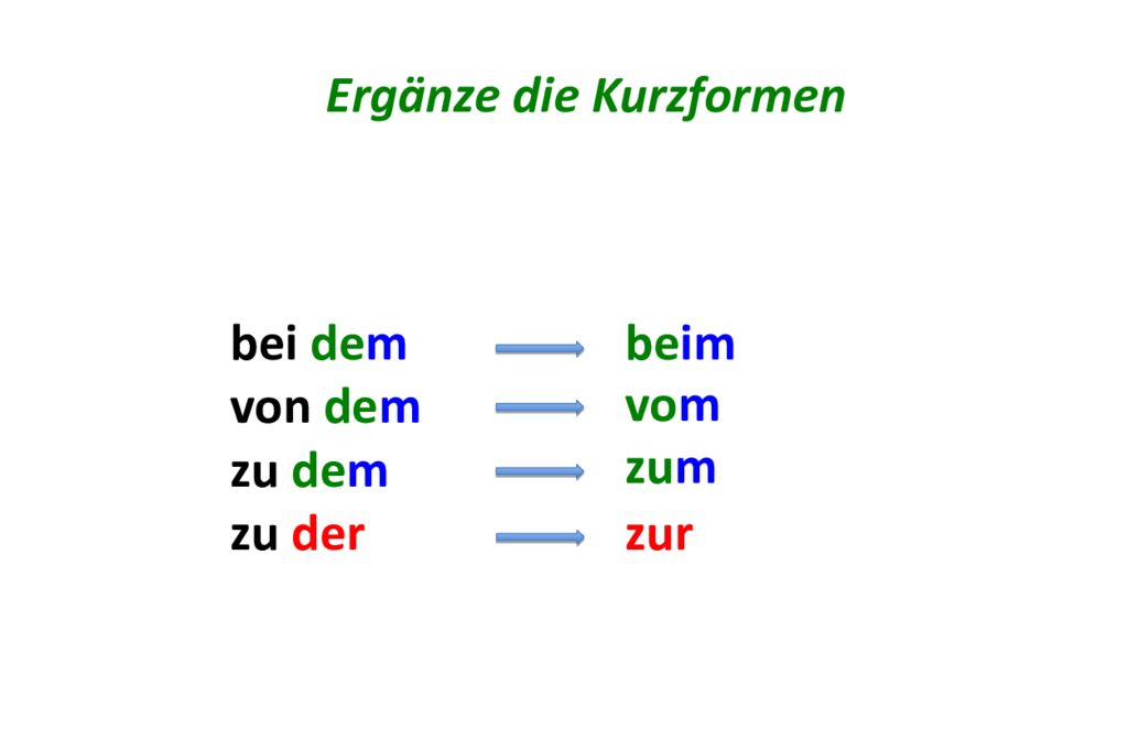 Ergänze die Kurzformen bei de m von de m zu de m zu der be im vo m zu m zur