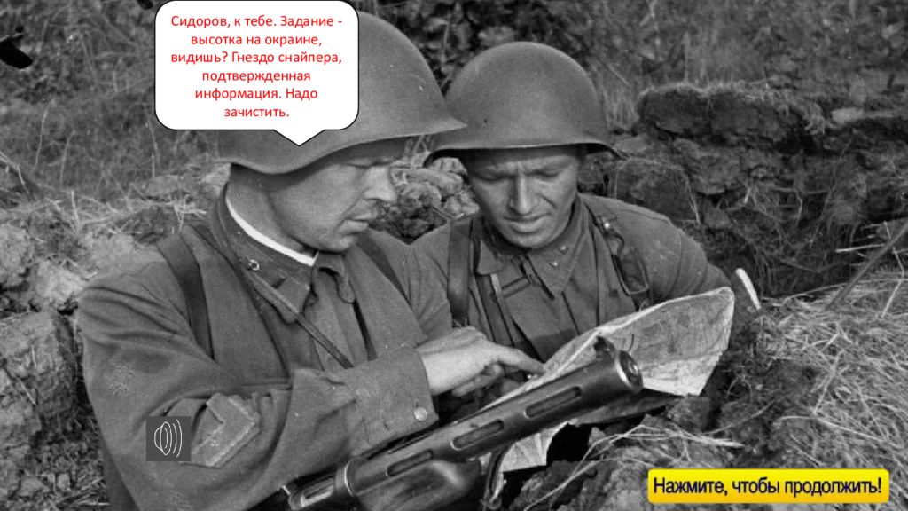 Сидоров, к тебе. Задание - высотка на окраине, видишь? Гнездо снайпера, подтвержденная информация. Надо зачистить.