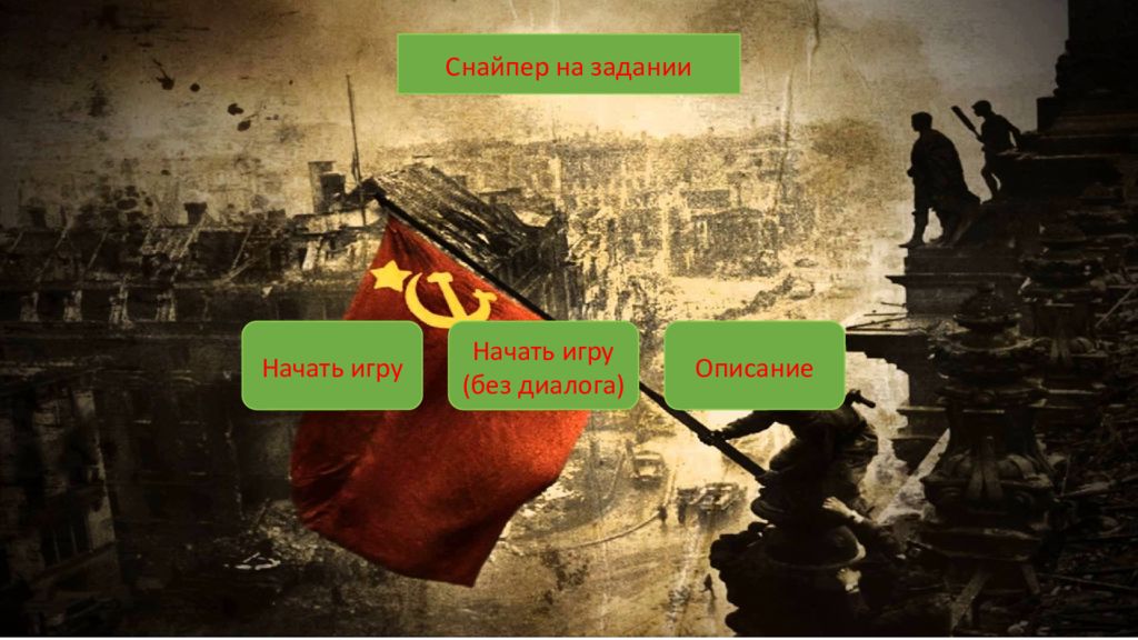 Последний слайд презентации: Начать игру Описание Начать игру (без диалога) Снайпер на задании