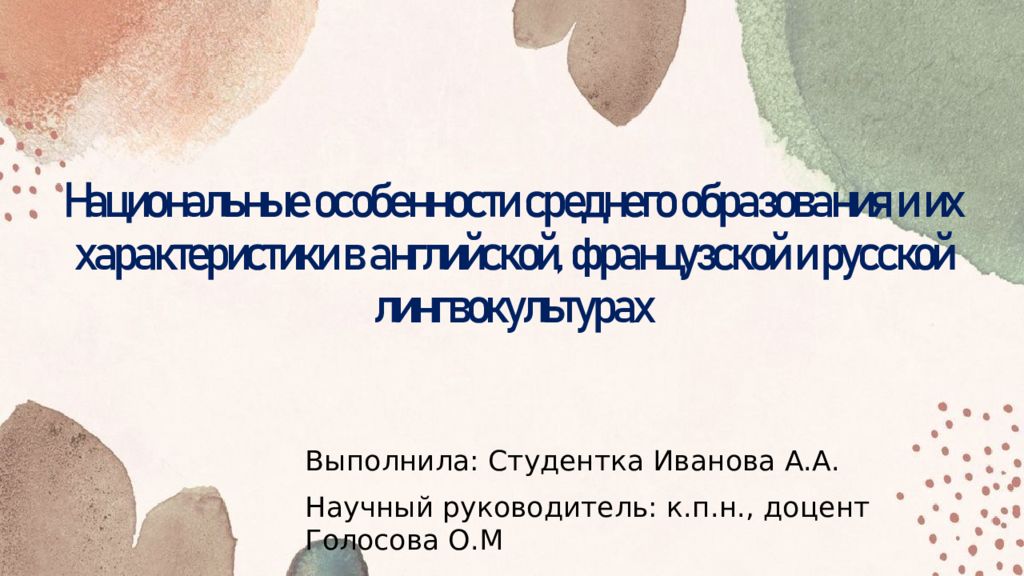 Первый слайд презентации: Национальные особенности среднего образования и их характеристики в английской, французской и русской лингвокультурах