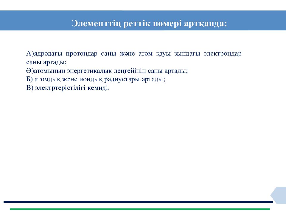 Слайд 6: Элементт ің реттік номері артқанда: